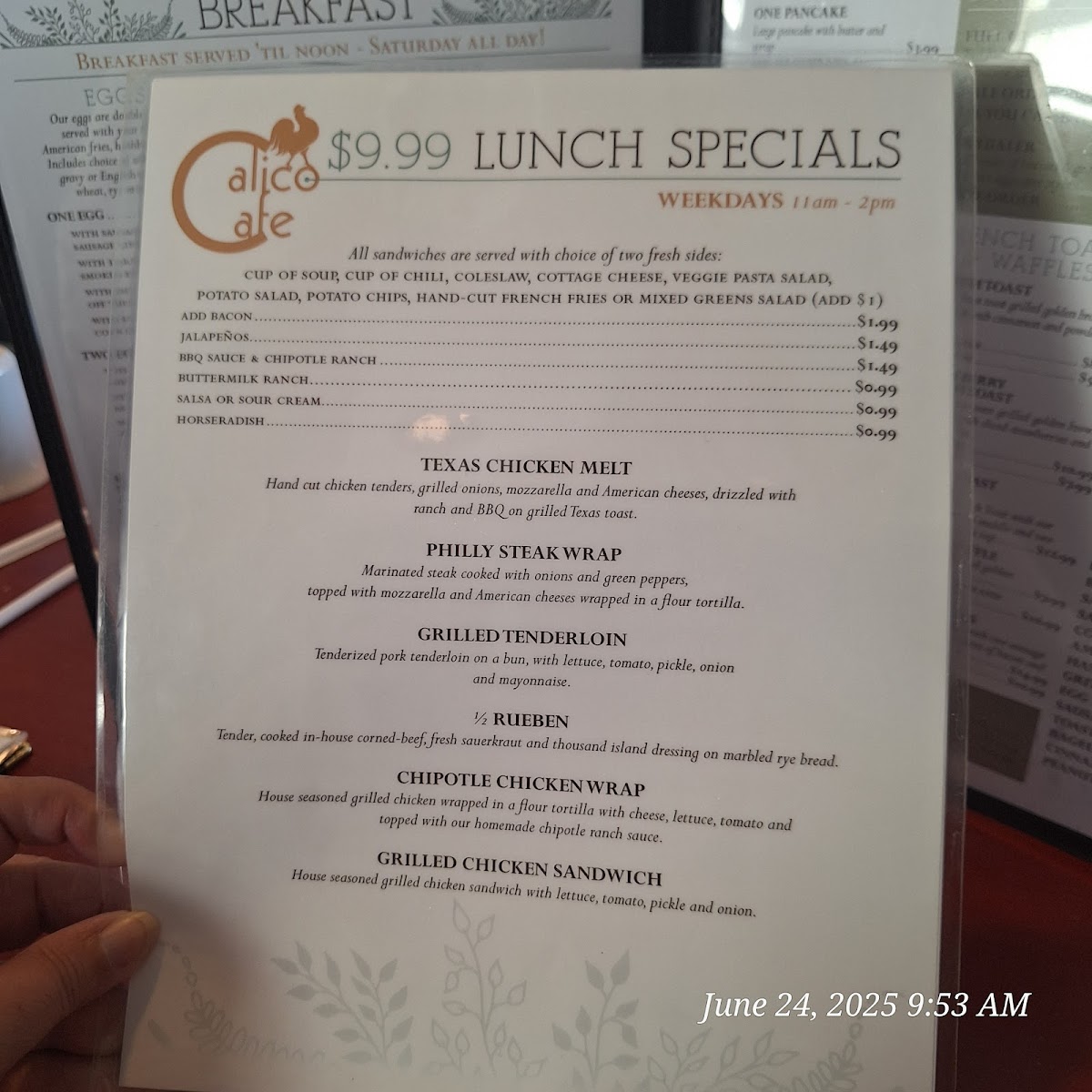 With positive reviews pouring in from visitors, it’s evident that the cafe doesn’t just serve food; it offers an experience. Families rave about the hot, fresh meals and the generous portions that keep kids satisfied until dinner. Whether you’re a local or just passing through, Calico Cafe is more than a meal; it’s a slice of comfort.